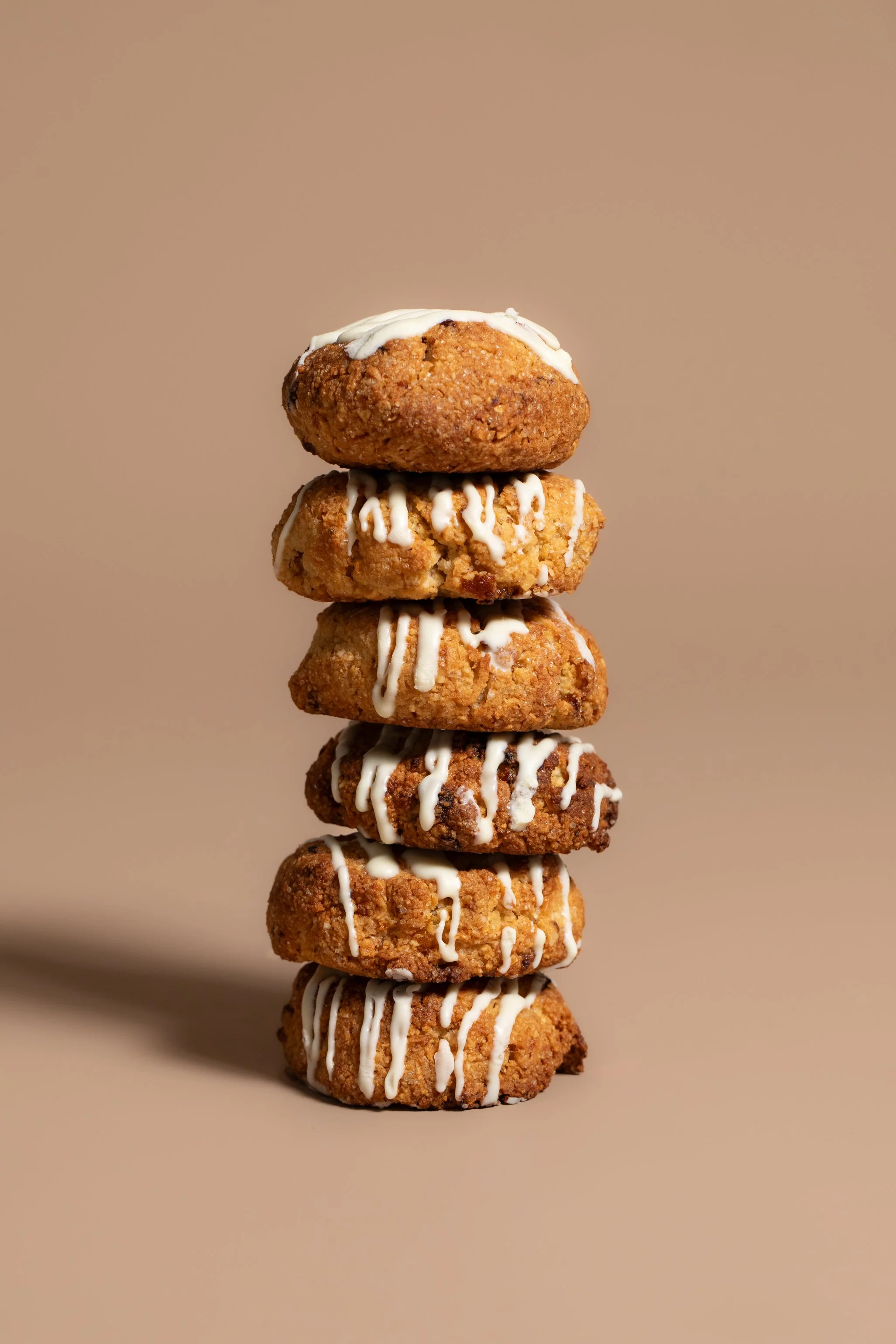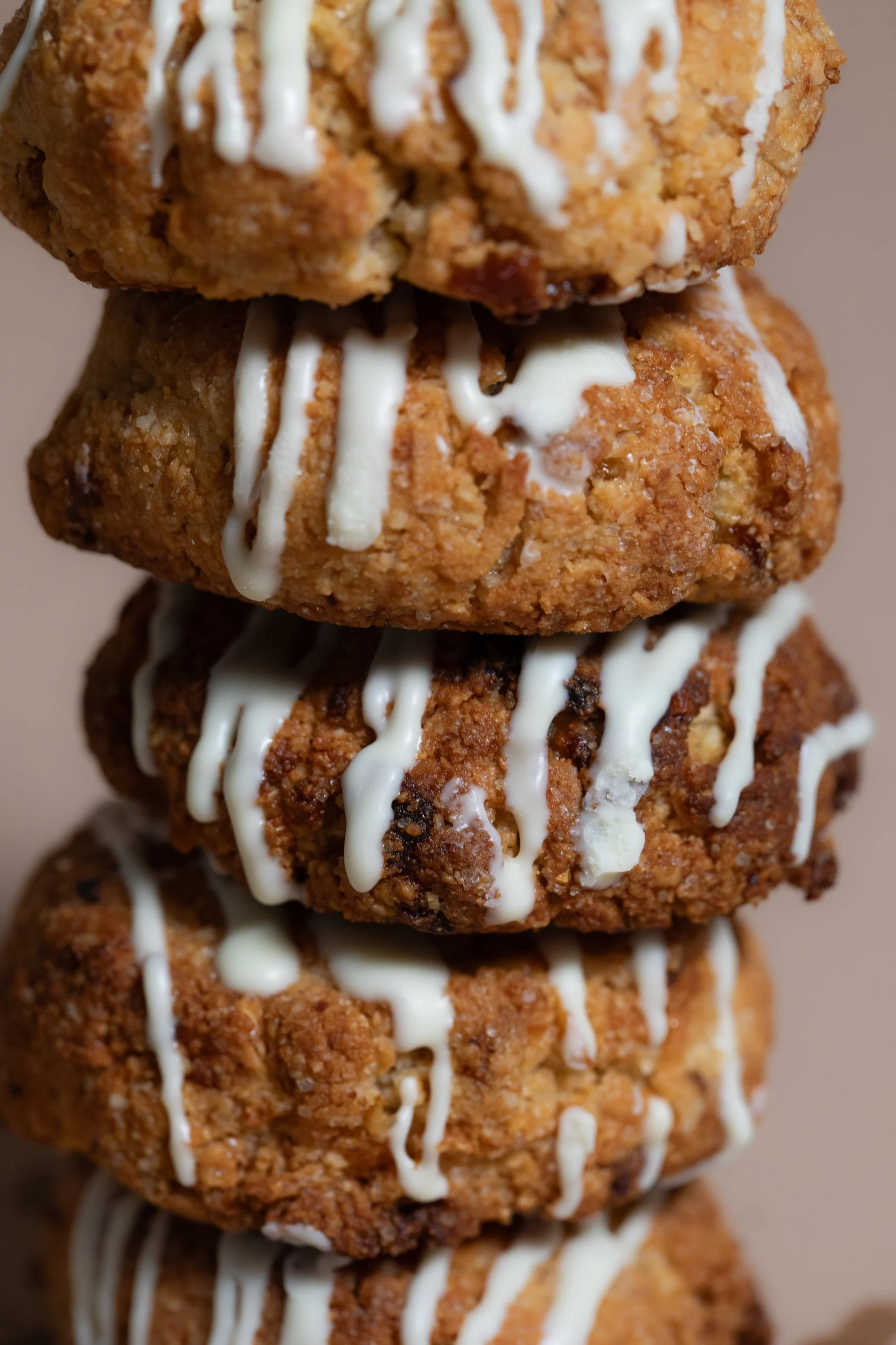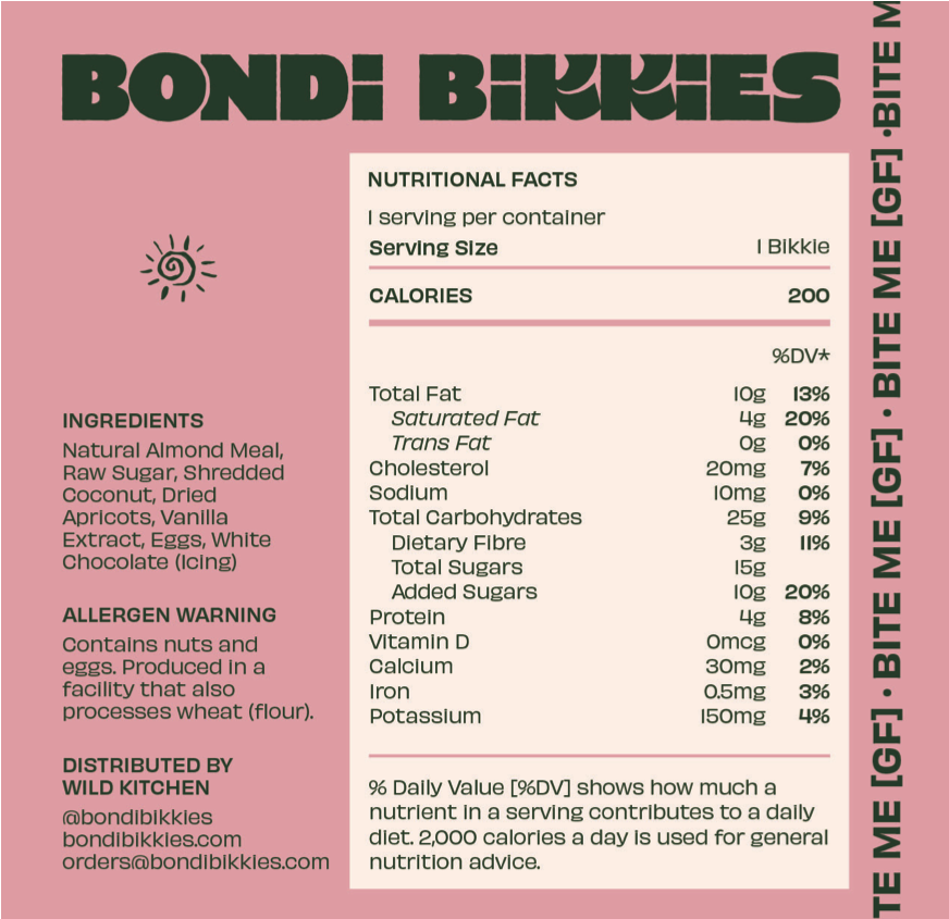 Natural Almond Meal, Raw Sugar, Shredded Coconut, Dried Apricots, Vanilla Extract, Eggs, White Chocolate (Icing).
