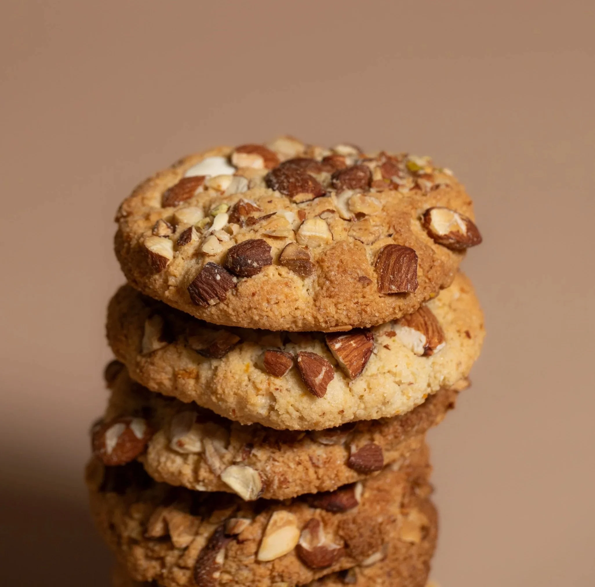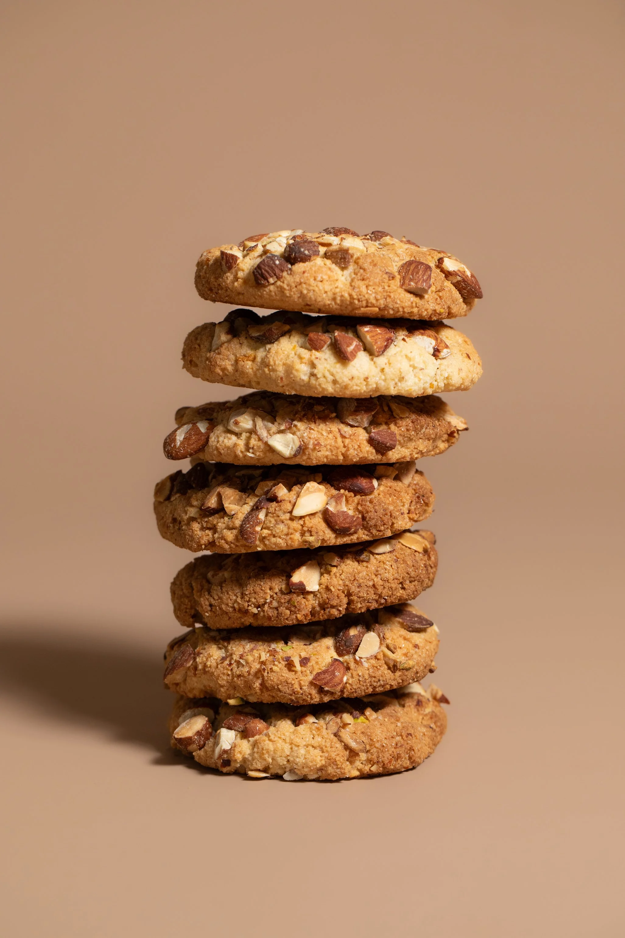 Crispy on the outside and soft on the inside, this gluten-free cookie has a texture similar to a tasty macaron. It is mildly sweet with a delicious, nutty almond base enhanced by orange zest and vanilla. Each cookie is finished with a light dusting of toasted sliced almonds and pistachios.